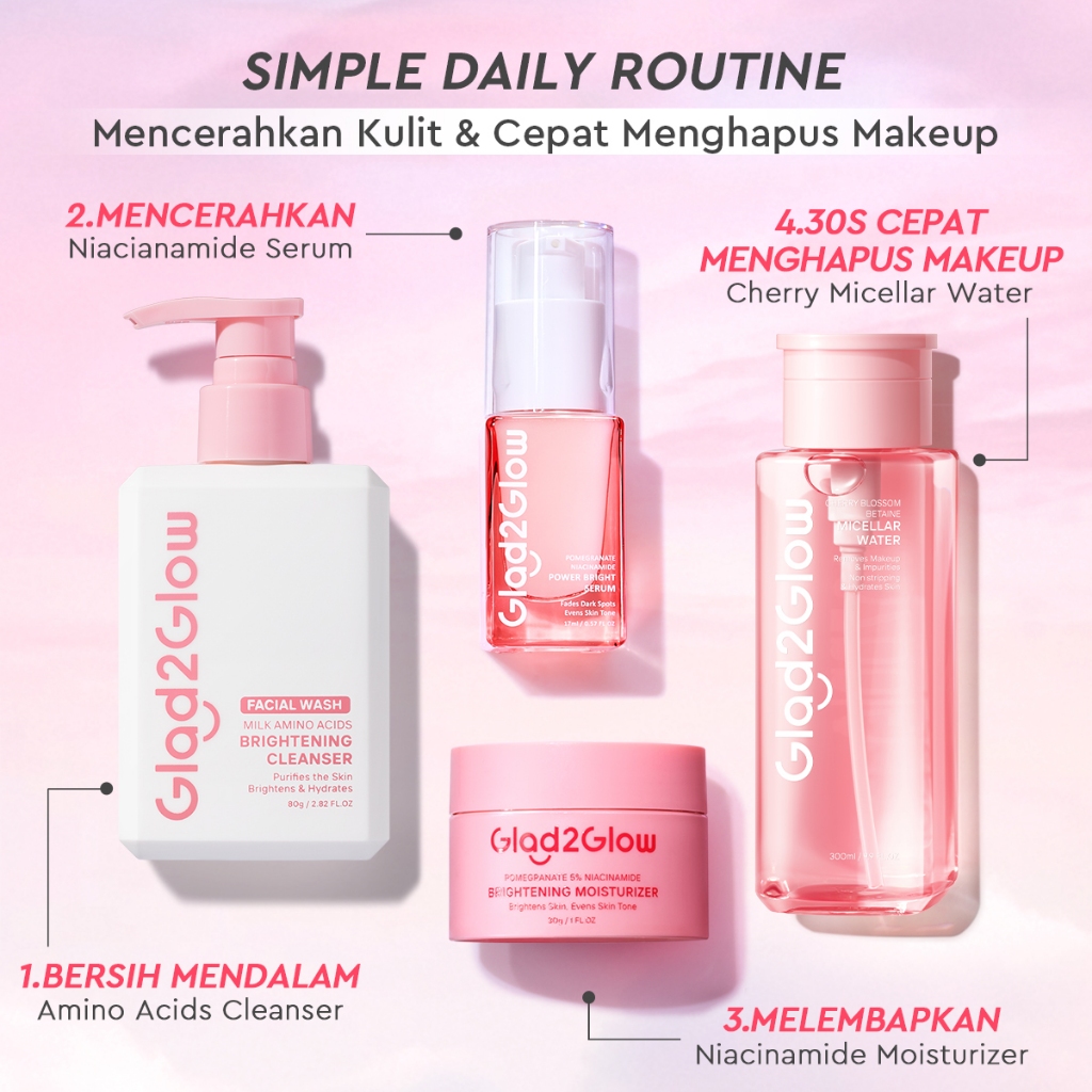 Glad2glow cerah day & night glowing and makeup combo 4in1 skincare paket Niacinamide moisturizer + serum + milk facial
