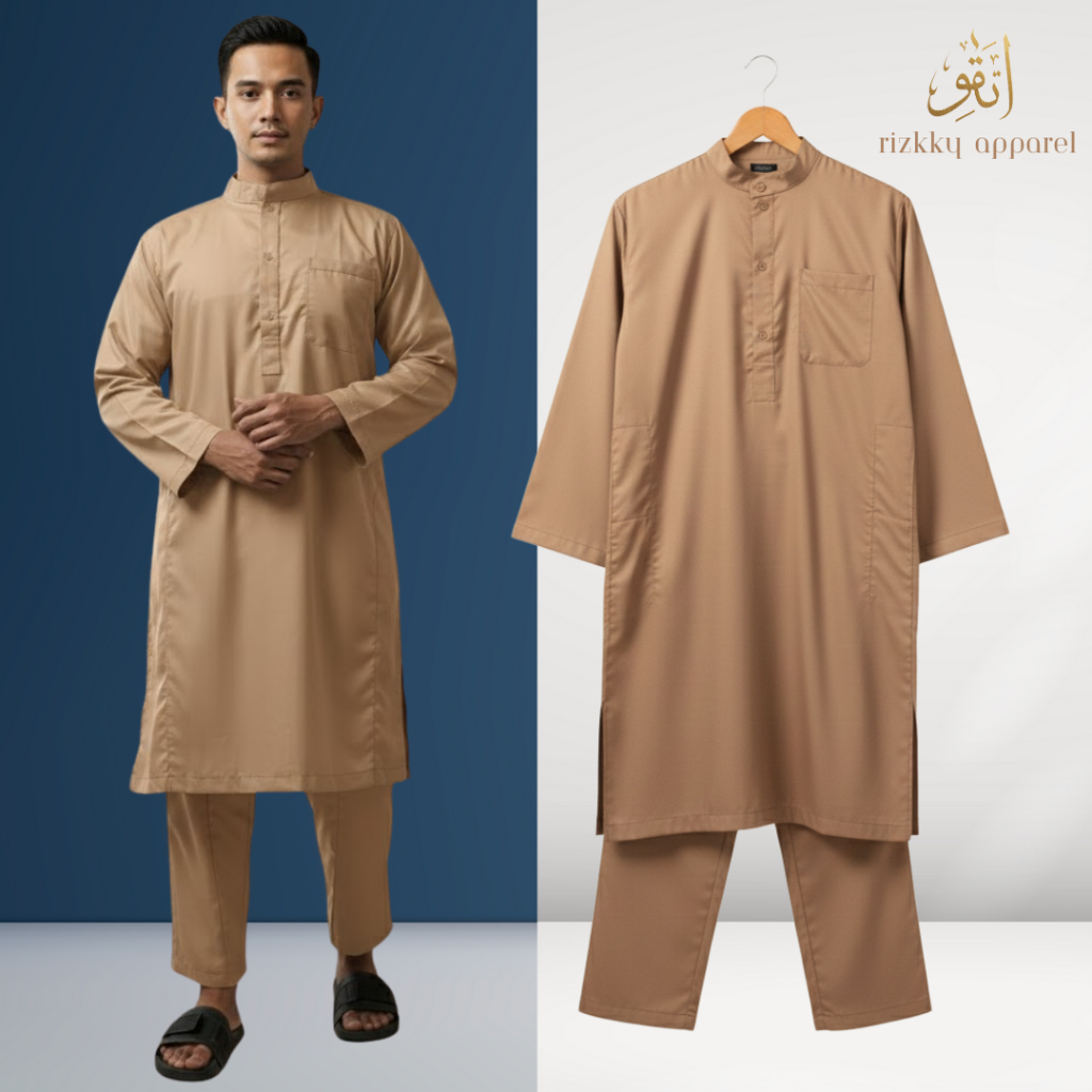 Setelan Kurta by At-Taqwa | Baju Koko Muslim Pria Bahan Katun Premium & Celana Panjang Adem Nyaman