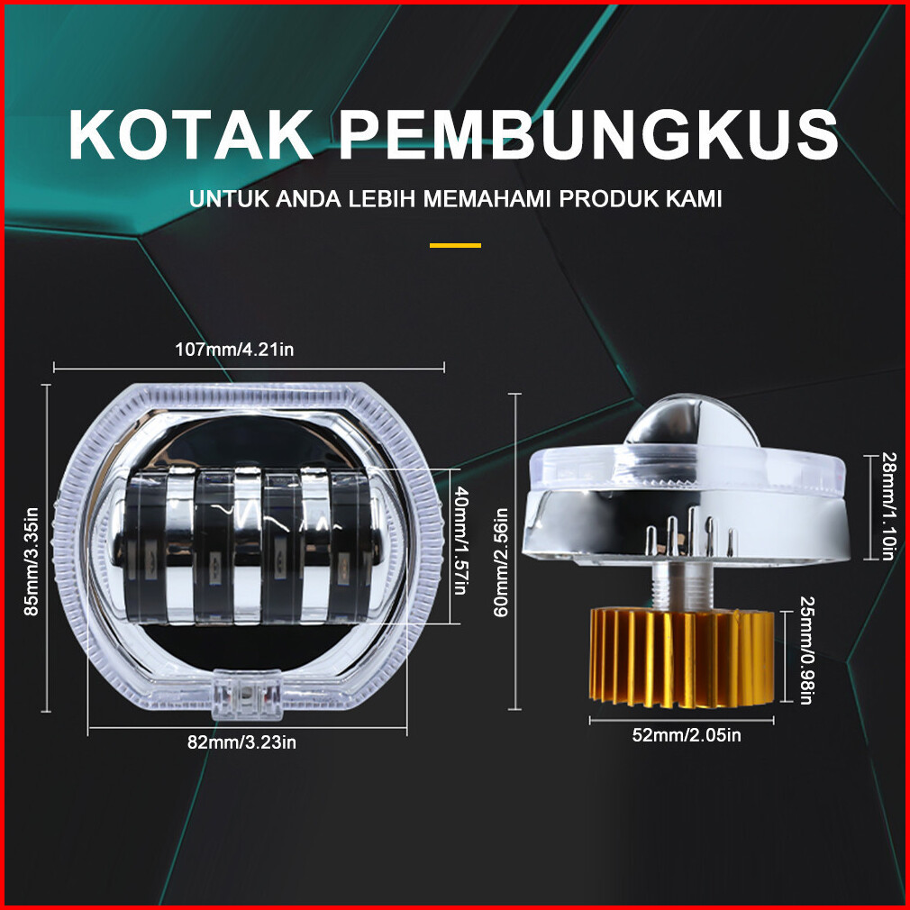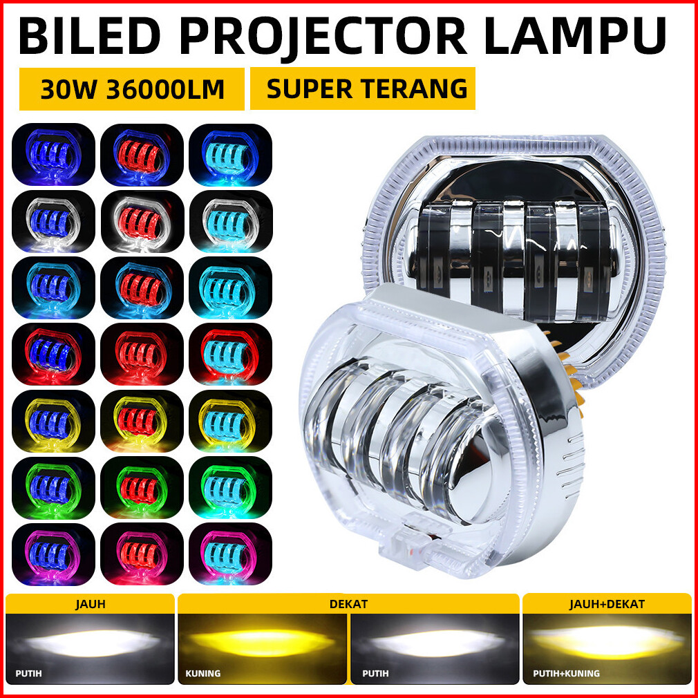 Lampu Biled Tembak Led Projie Biled Shroud 4.5inc 8d 4 Lensa Dengan Devil Eye Original Super Terang High Low 30watt Dc12