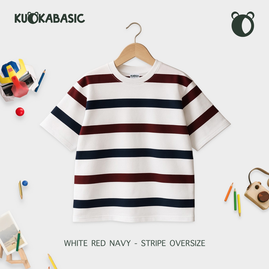 Kuokabasic Kaos Salur Anak Oversize | Kaos Stripe Anak Unisex | Baju Motif Garis Anak Premium 24S
