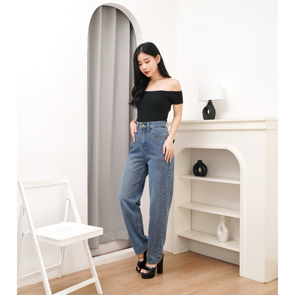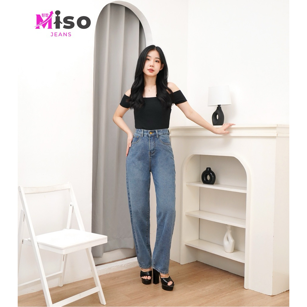 ms-8005 MISO JEANS Celana Jeans Highwaist Stone Wash Baggy Loose Jeans Denim Premium Non-Stretch Basic Santai Dengan Kan