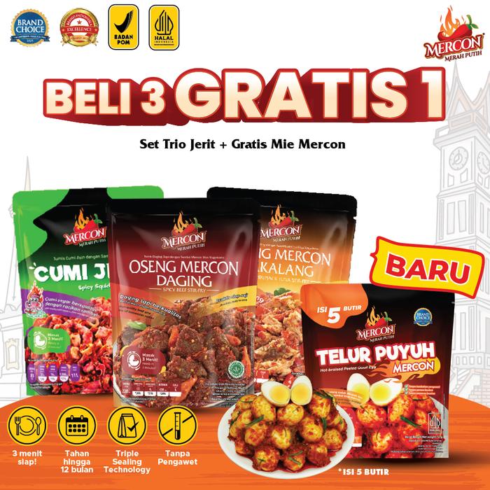 Mercon Merah Putih - Set Trio Jerit || Oseng Mercon Daging + Cumi Jerit Sambal Mercon + Oseng Mercon Cakalang) Free Telu