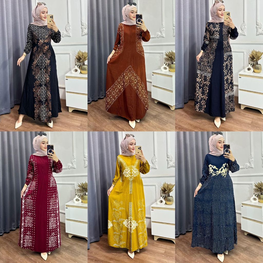 Batik Ma Boss - Terbaru Gamis Twill Rayon Pekalongan Cap Malaman Ori Home Dress Busui Jumbo Premium
