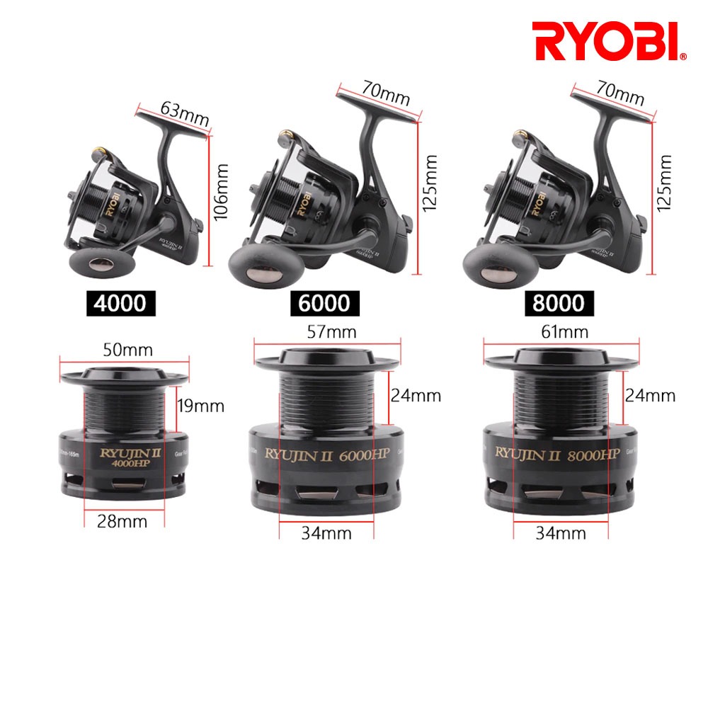 Ryobi Ryujin Ii Hp Reel Pancing Spinning Metal Spool 7+1 Ball Bearing