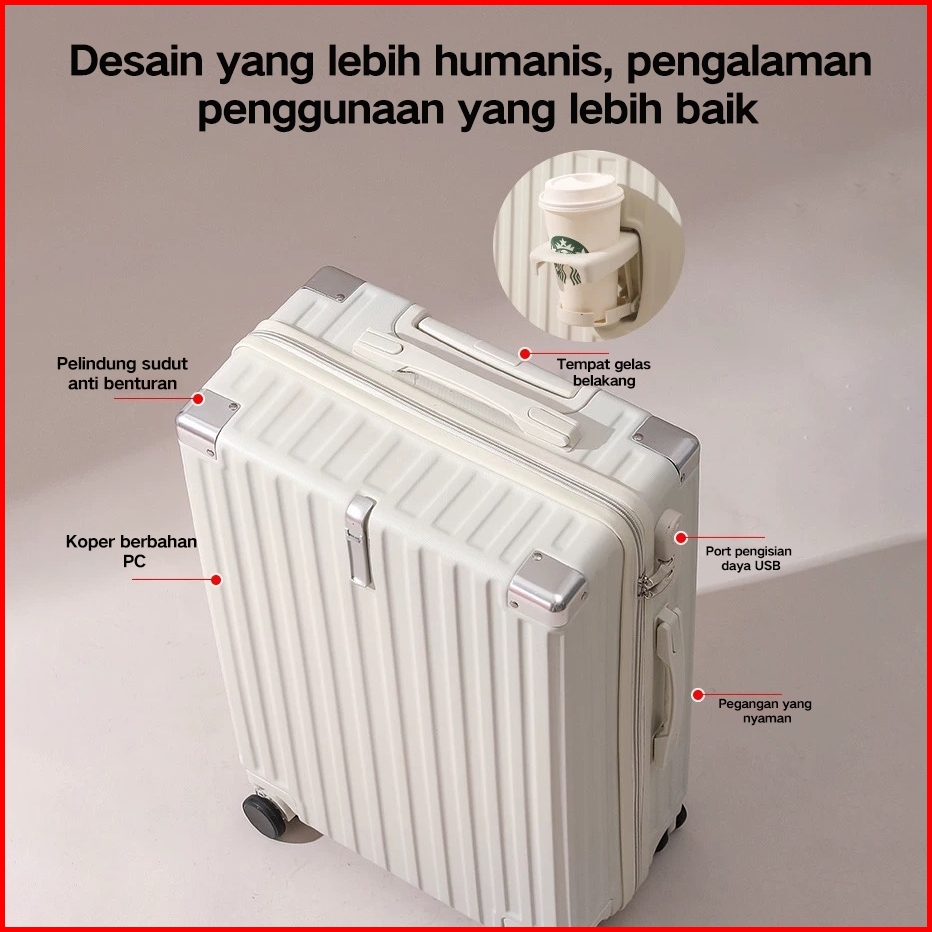 Cece Koper Travel Abs Pc 18 20 22 24 26 28 Inch Dengan Usb Port Cup Holder Ringan Kuat Stylish Terbaru