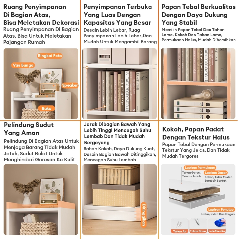 Rak Buku 6 Susun Serbaguna Lemari Buku Kayu Rak Helm Rak Buku Anak Rak Baju Portable Lemari Penyimpanan Minimalis