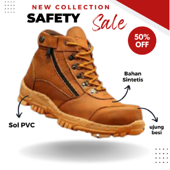 Sepatu Safety Pria Boots Zipper Morisey Sleting - Shoes Men'S Boot Septy Ujung Besi Kerja Lapangan Proyek Sefty Outdoor