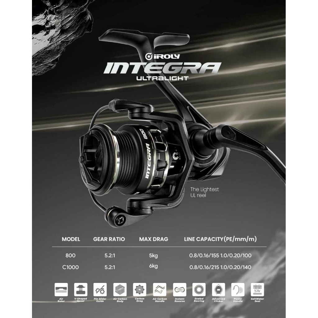Reel Iroly Integra Ultralight 800 1000 Black Edition Carbon - Power Handle