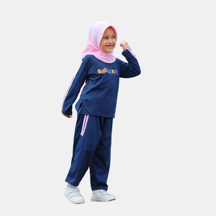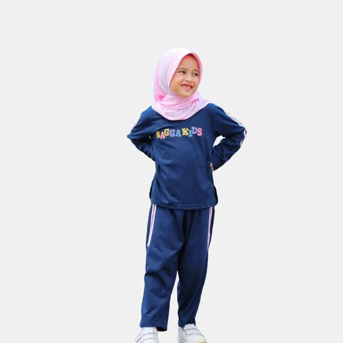 Baju Olahraga Anak Perempuan / Cewe Raggakids Usia 3 - 11 Tahun Setelan Kaos Training - Navy, S