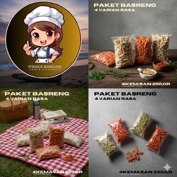 Paket Bandling Basreng 4 Varian Rasa Kemasan 250Gr. Snacks Pedas - -