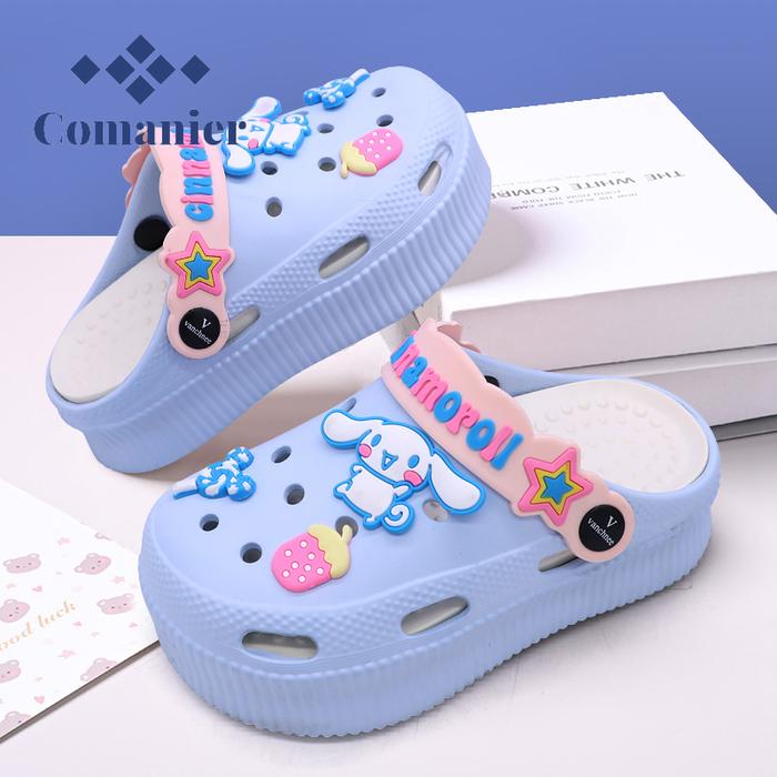 Comanier Sandal Anak Fuji Baim Perempuan Sandal Kodok Dewasa Wanita Sepatu Wedges Platform Eva - Hitam, 20-21