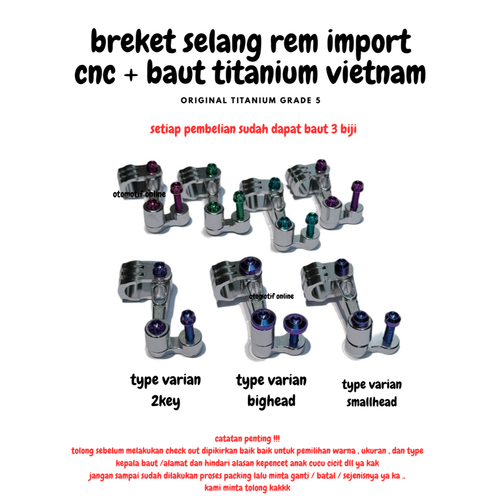 Breket Selang Rem + Baut Titanium 3Pc Pendek Panjang Cnc Sportday Universal Pendek Pnp