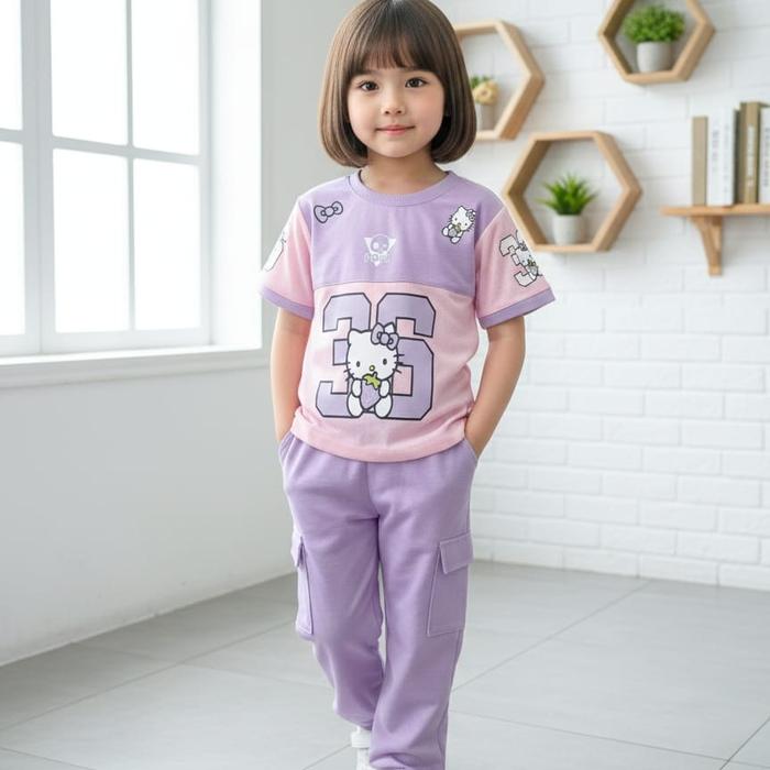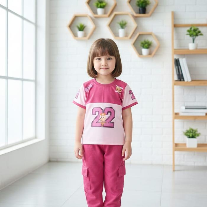 Setelan Anak Perempuan Viral Model Jersey Untuk Anak Usia 1-10 Tahun Baju Tshirt Dan Celana Cargo Warna Warni - Celana P