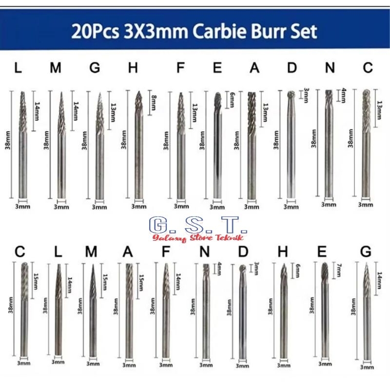 Mata Bor Cuner Tuner 3×3×38Mm Full Carbide Mata Porting Rotary Burs 3Mm Baru