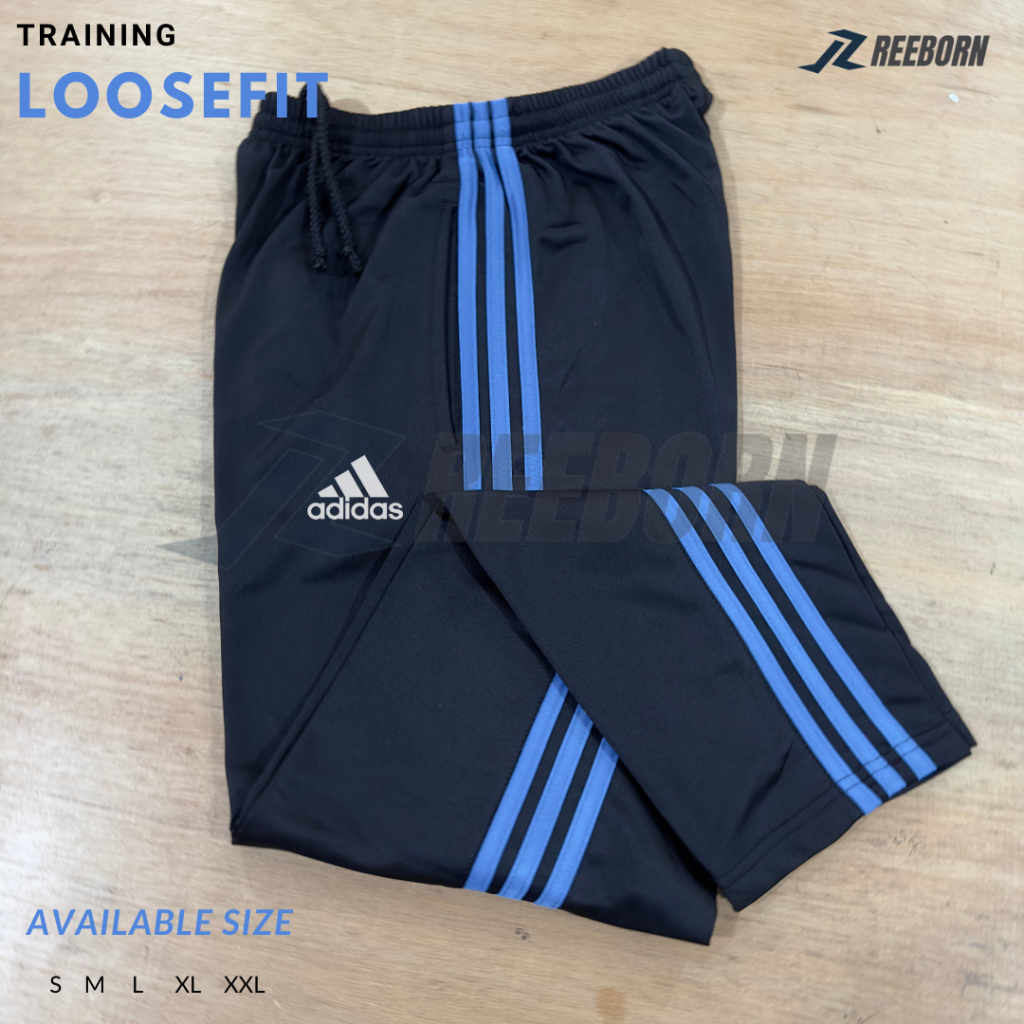 Reborn.Id Celana Panjang Training Olahraga 3 Strip Bahan Tebal Lembut Unisex