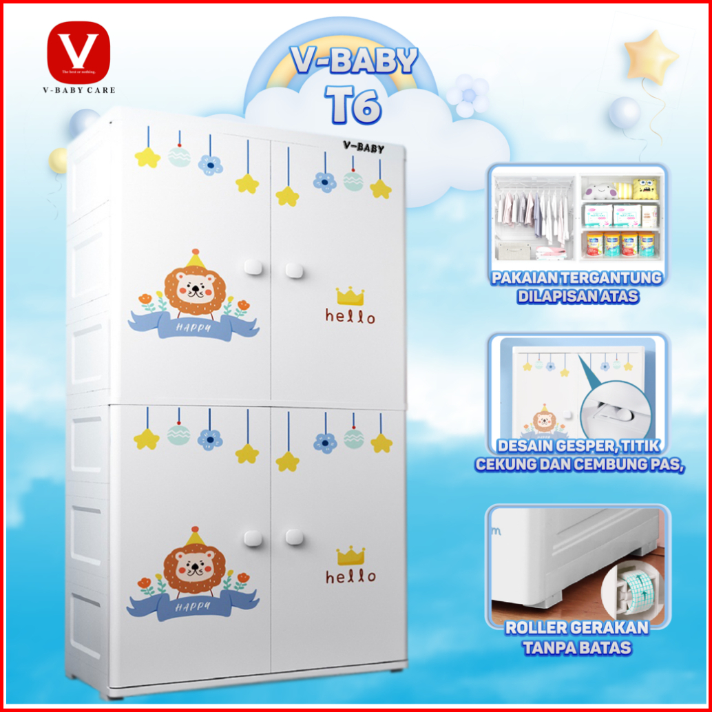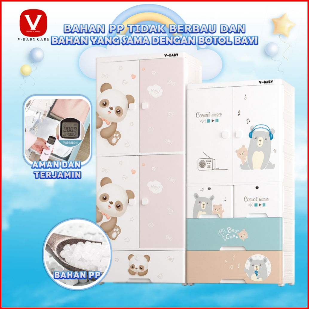 V-baby Care - Lemari Pakaian Anak 65cm Lemari Bayi Plastik Plastic Storage Cabinet Lemari T6