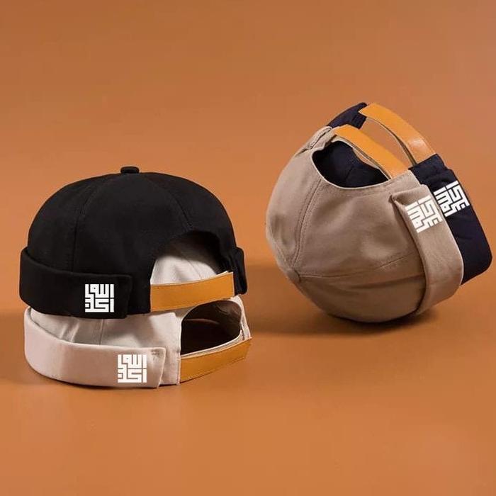 Topi PECI PRIA ISLAMI Songkok Bulat MIKI HAT DEWASA LOGO KALIGRAFI Katun Musim panas Muslim Kopiah - HITAM