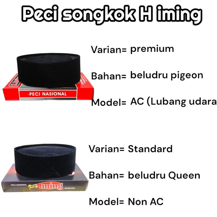 Peci songkok h iming warna hitam bahan tebal ukuran dewasa dan anak - Premium Ac no 4 tinggi 9