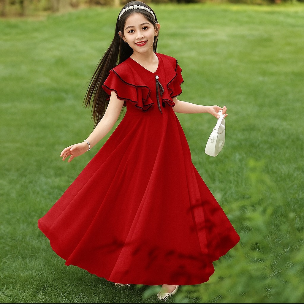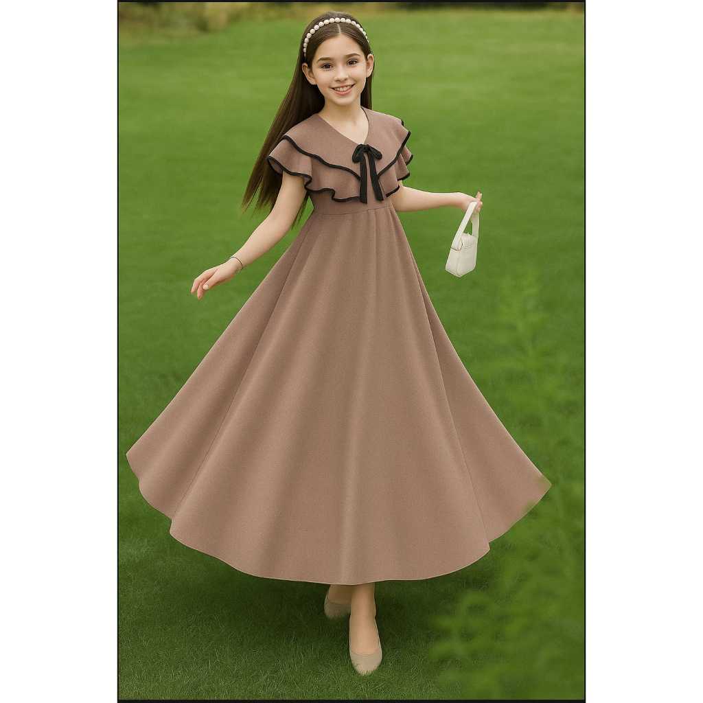 DRESS ANAK PEREMPUAN BANGKOK PRINCESS WHITE LONG PRINCESS/DRESS LEBARANTERBARU/UMUR 5-15 TAHUN/FASHION ANAK/ANAK KOREA/GAMIS ANAK/TERLARIS