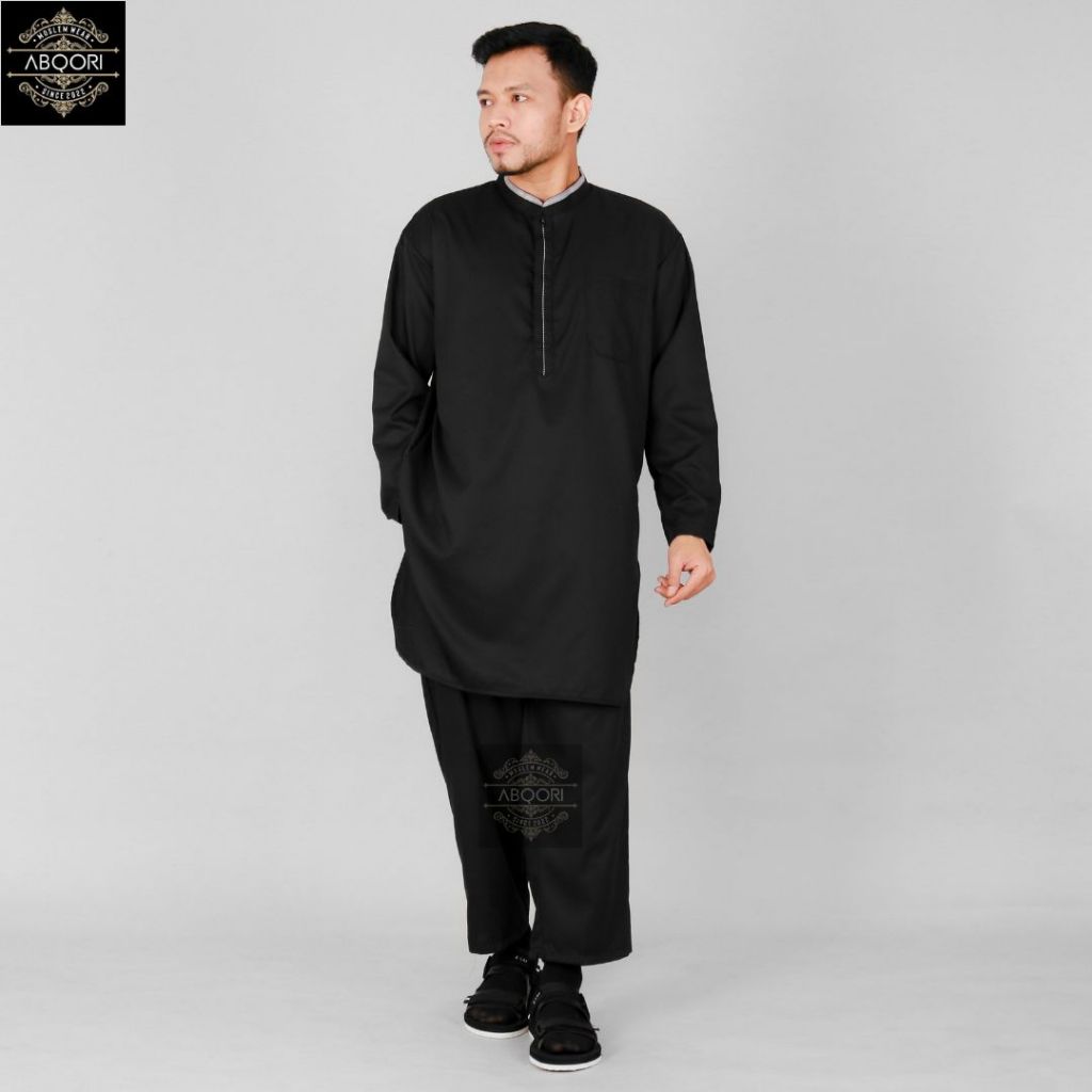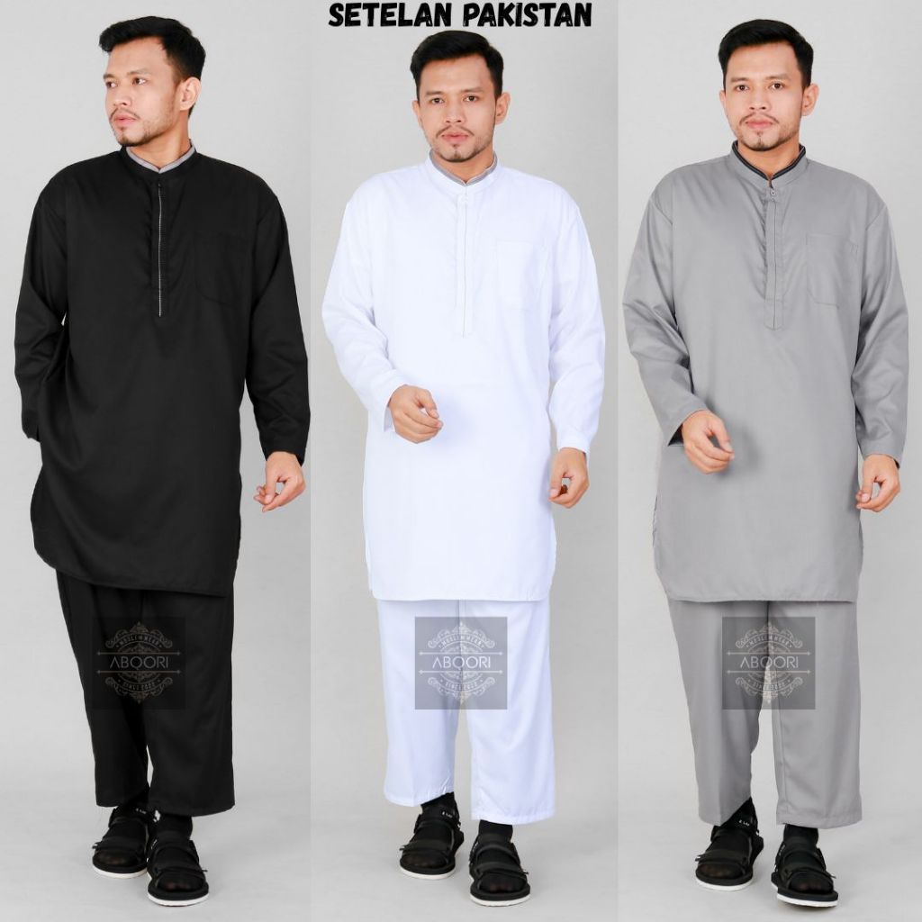 Baju Koko Pria Setelan Kurta Pakistan Dewasa Lengan Panjang Bahan Katun Toyobo Warna Abu Putih Navy Dan Hitam Model Terb