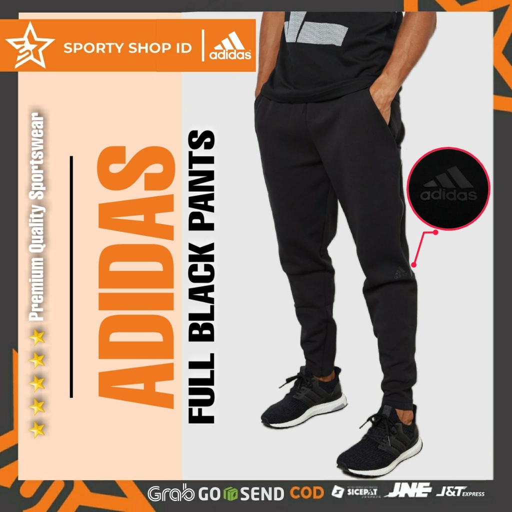 Celana Training Trening Sport Joging Gym Lari Track Pants Olahraga Pria Wanita Hitam Polos