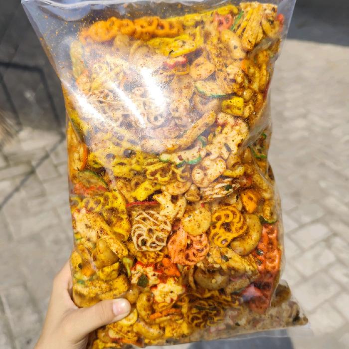 1Kg Kerupuk Seblak Campur Mix Cikruh Pedas Daun Jeruk Food Kering Snacks Krupuk Keripik - Seblak Campur 1Kg