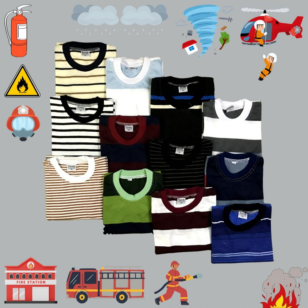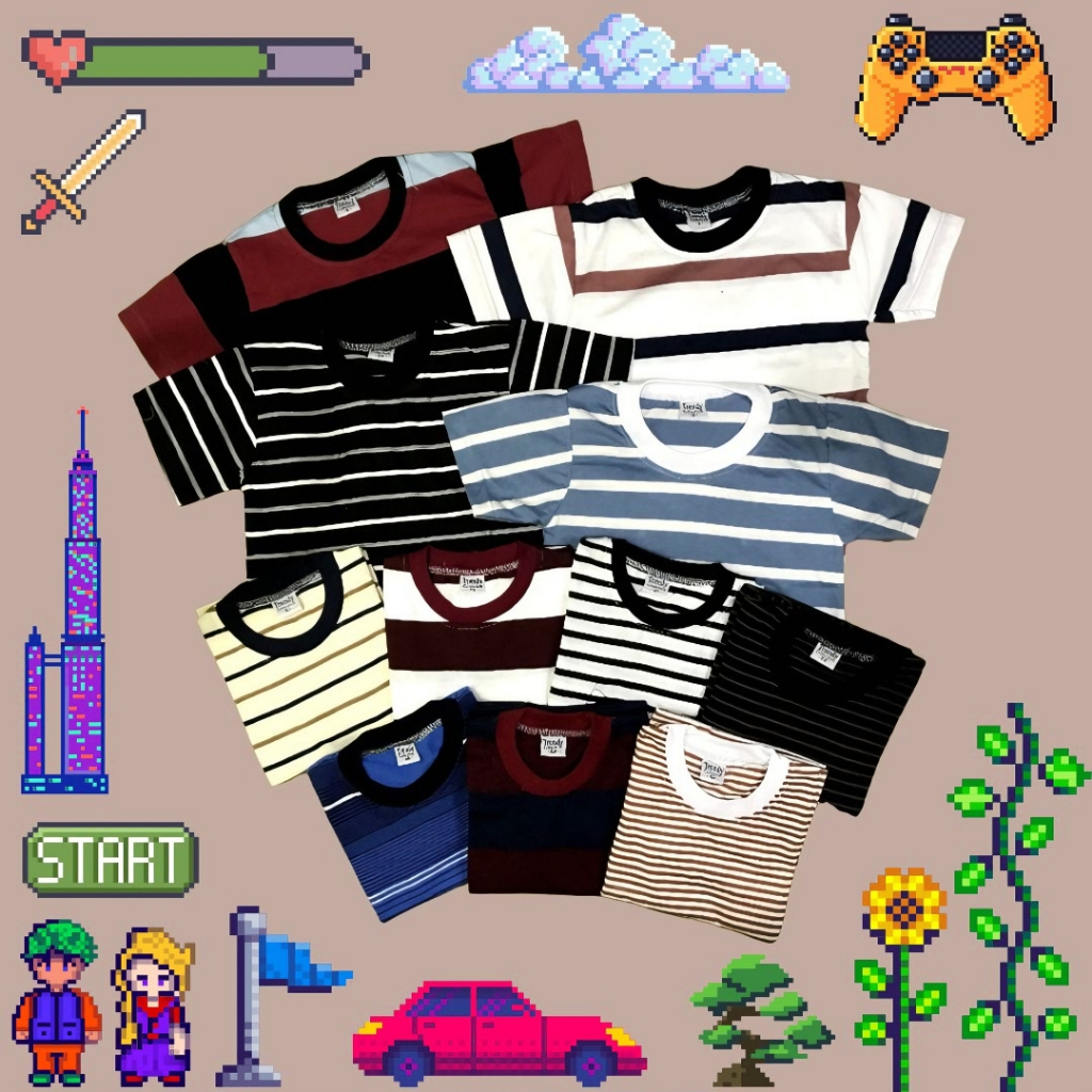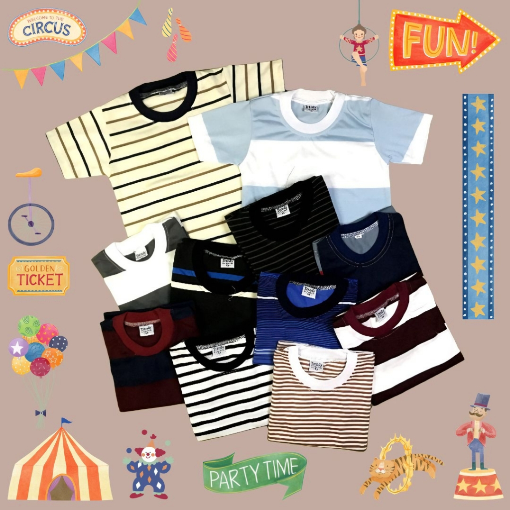 Paket 6/12 Kaos Baju Anak Laki-Laki Perempuan Usia 0 1 2 3 4 5 6 7 8 9 Tahun Motif Salur Stripe
