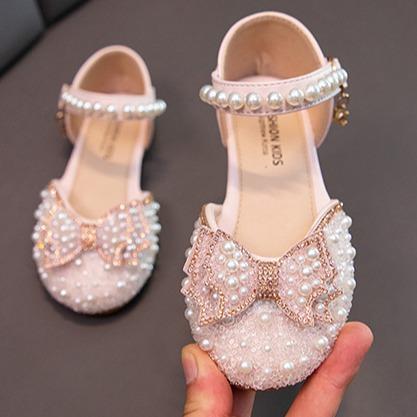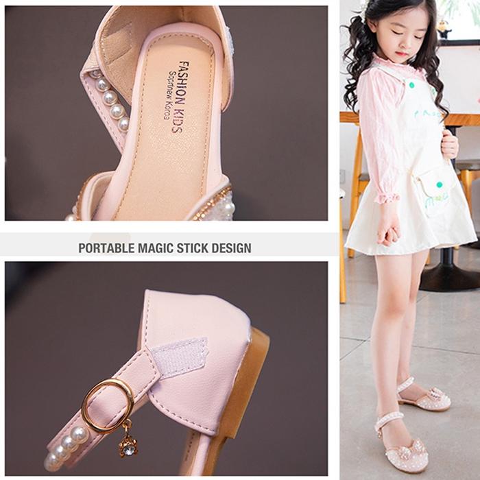 Kotak Sepatu + Mahkota Sepatu Pesta Anak Cewek Cristal Mutiara Diamond Fashion Kids Sandal 21-34 - Pink, Size: 30/18.4Cm