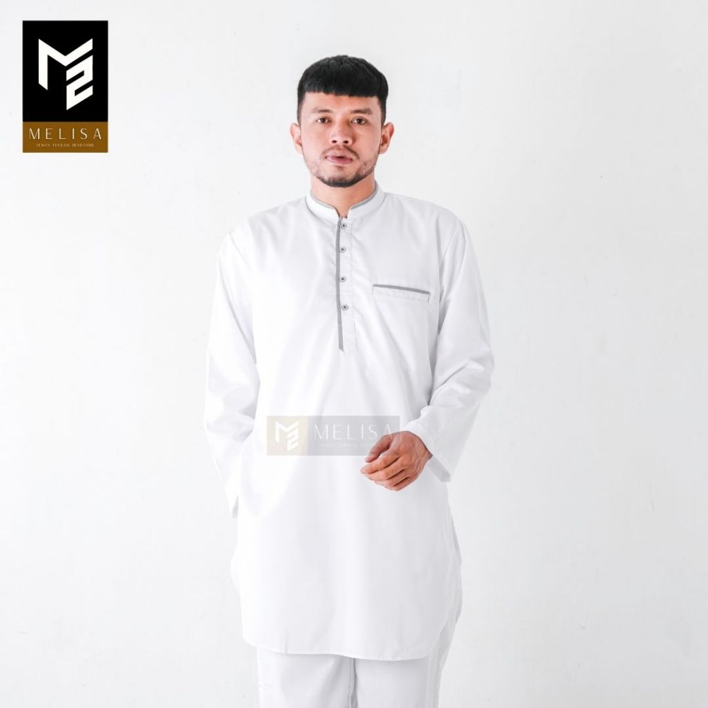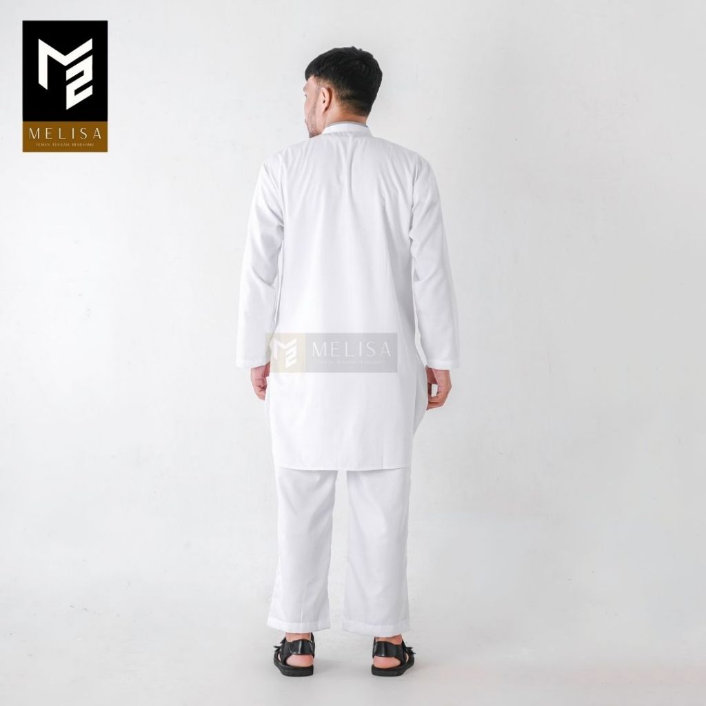 Baju Koko Pria Setelan Kurta Pakistan Dewasa Lengan Panjang Bahan Katun Toyobo Warna Putih Perlengkapan Haji Umroh