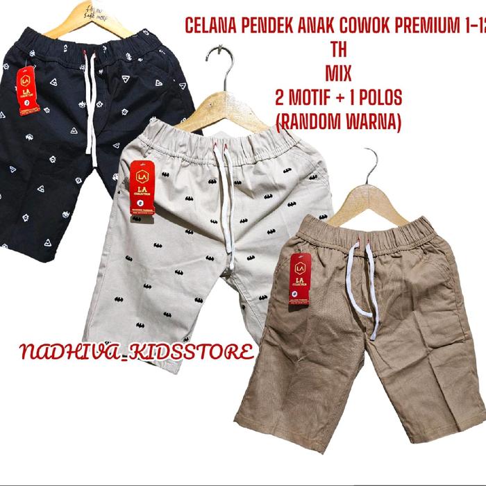 3Pcs100Rb 2Pcsmotif Mix 1Pcspolos Celana Pendek Anak Cowok 1-15 ThRandom Motif&Warna Hawai - 3Pcs Mix Motif&Polos, Siz