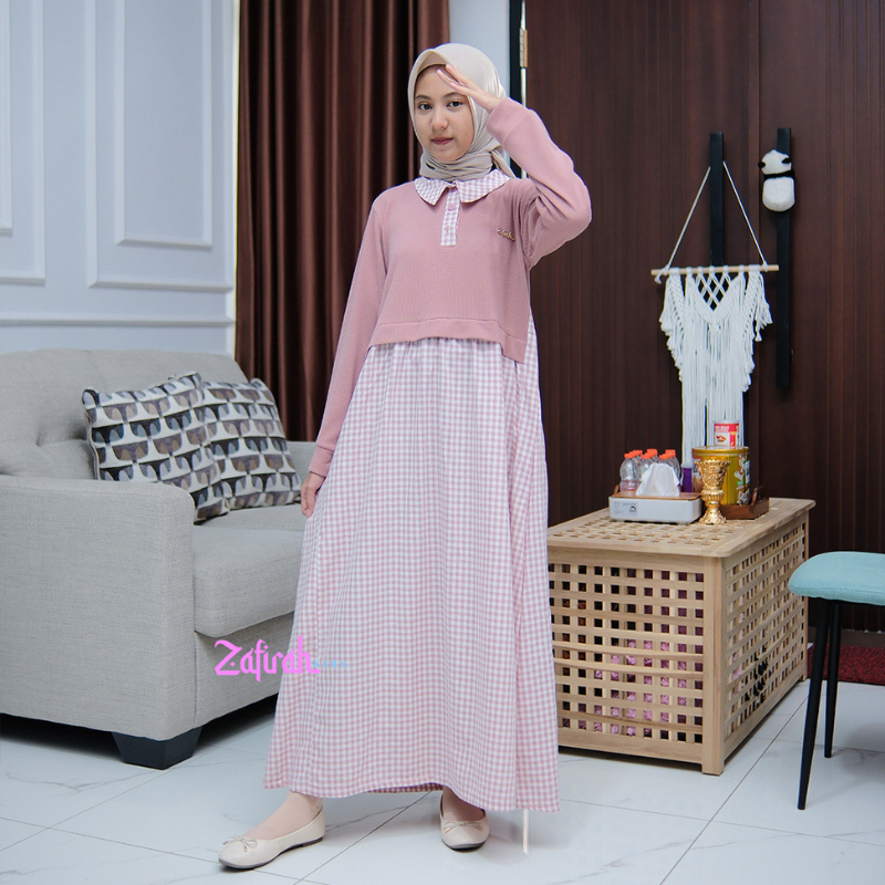 Gamis Anak Perempuan Raina Dress Motif Kotak Baju Muslim Anak Tanggung Kekinian Zafirah Kids