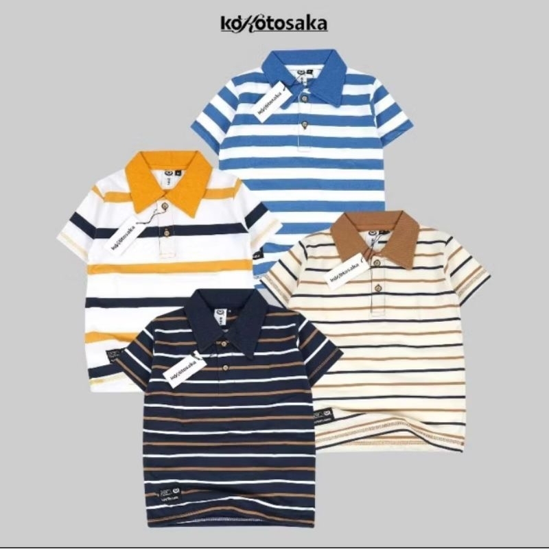 Baju Kaos Kerah Anak Motif Salur Lengan Pendek Umur 1-12 Tahun Adem & Nyaman Dipakaii