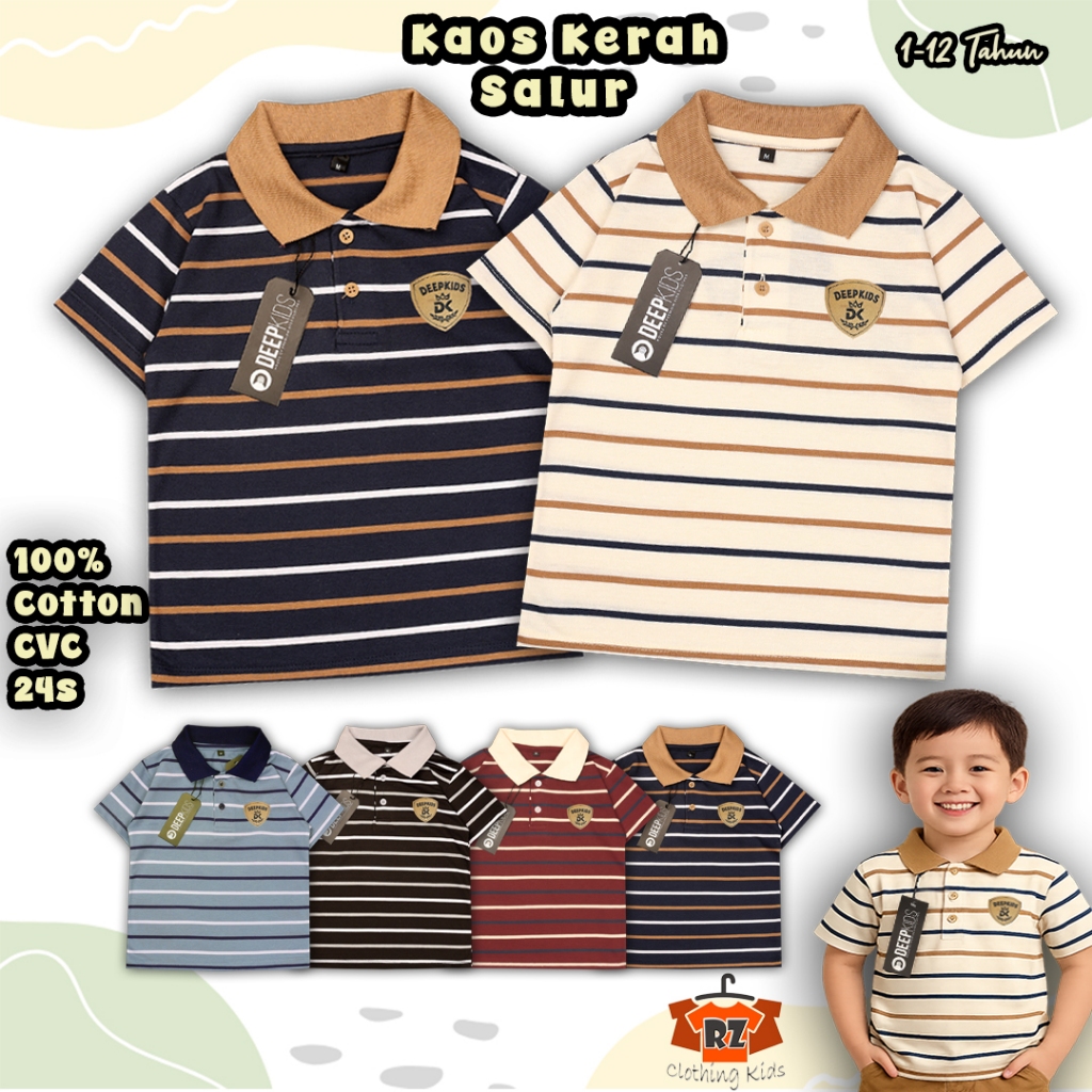 Deepkids Baju Kaos Kerah Salur Anak Laki Laki Bahan Cotton Cvc 24S Usia 1 2 3 4 5 6 7 8 9 10 11 12 Tahun | Kaos Stevada