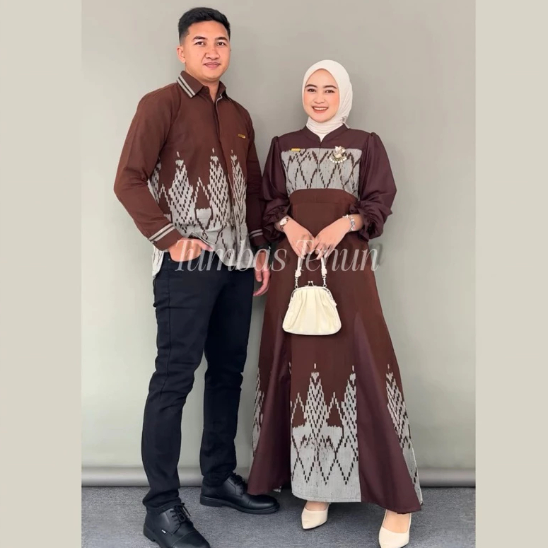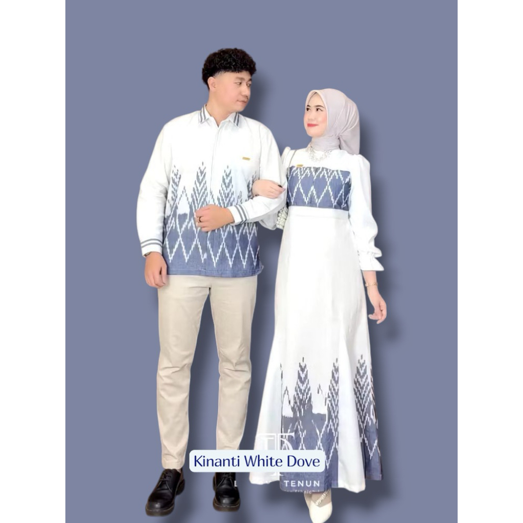 Gamis Dress Etnik Tenun Premium Remaja Wanita Warna Putih Navy Gamis Tenun Etnik Kombinasi