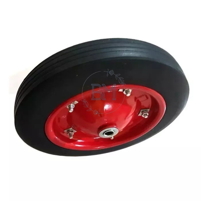 Roda Gerobak Sorong Pasir Ban Mati Karet Hitam Angkong Dorong Merah Bm