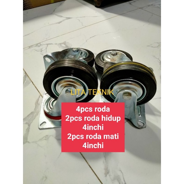 Roda Karet 4 Inchi Roda Etalase 1Set 4Pcs Roda Gerobak 4 In