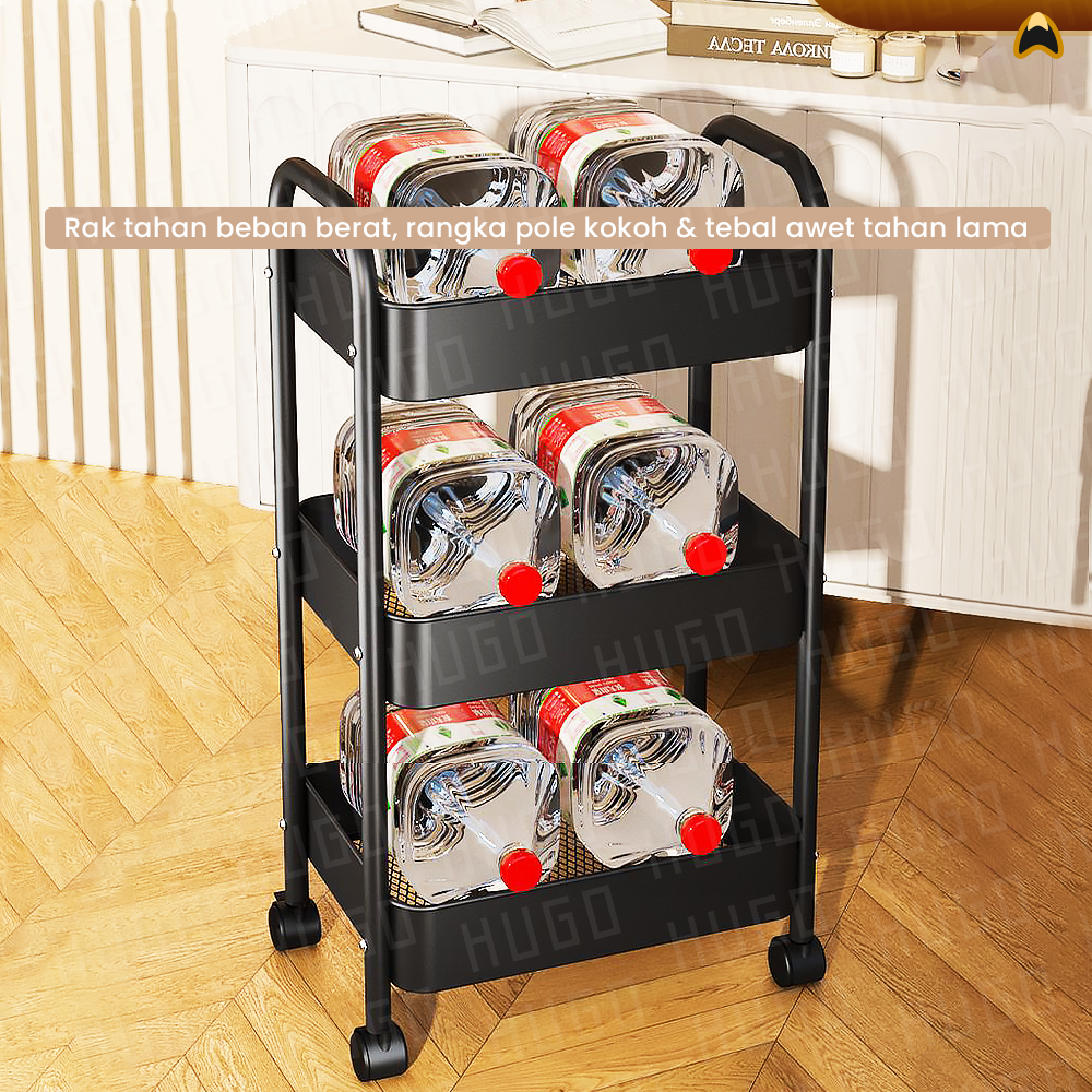 Hugo Houseware Rak Dapur Serbaguna Rak Besi Penyimpanan Bertingkat Serbaguna Rak Troli Susun Dorong