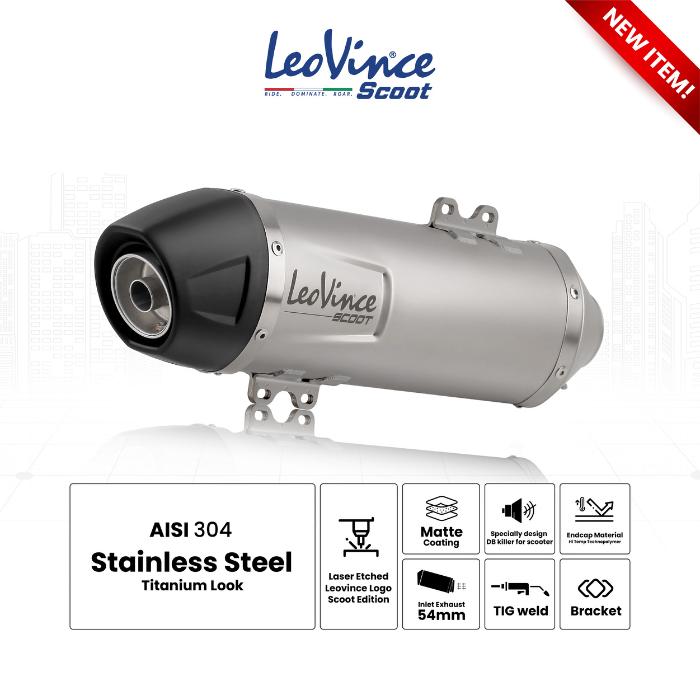 KNALPOT RACING MATIC LEOVINCE LV SCOOT SILENCER ONLY INLET 54MM PLUS DB KILLER - TITANIUM LOOK