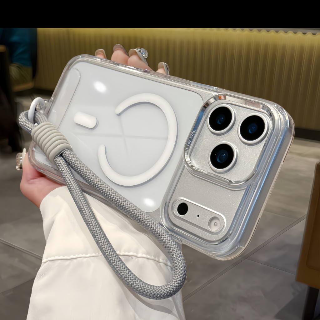 2-In-1 Transparent Shockproof Case For Iphone 17 16 15 14 13 Pro Max Magnetic Soft Edges With Lanyard