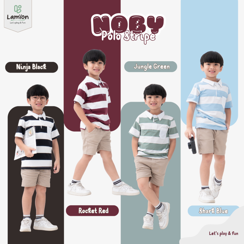 Lamion Baju Polo Stripe Anak Laki-Laki Dan Perempuan Usia 1-10 Tahun Noby - Kaos Kerah Salur Anak