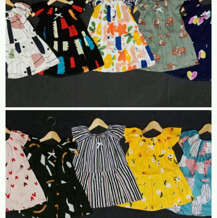 Isi 10Pcs Daster Anak Sambung Kekinian No Obras Ld20Cm Pj40Cm Umur 6Bln-2Th Motif/Warna Random Rayon Perempuan Anak-An