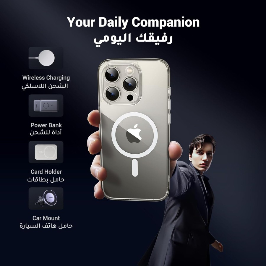 Ugreen Magsafe Classy Clear Frosted Black Case Casing Untuk Iphone 15 Pro Max 15 Pro 15 Plus