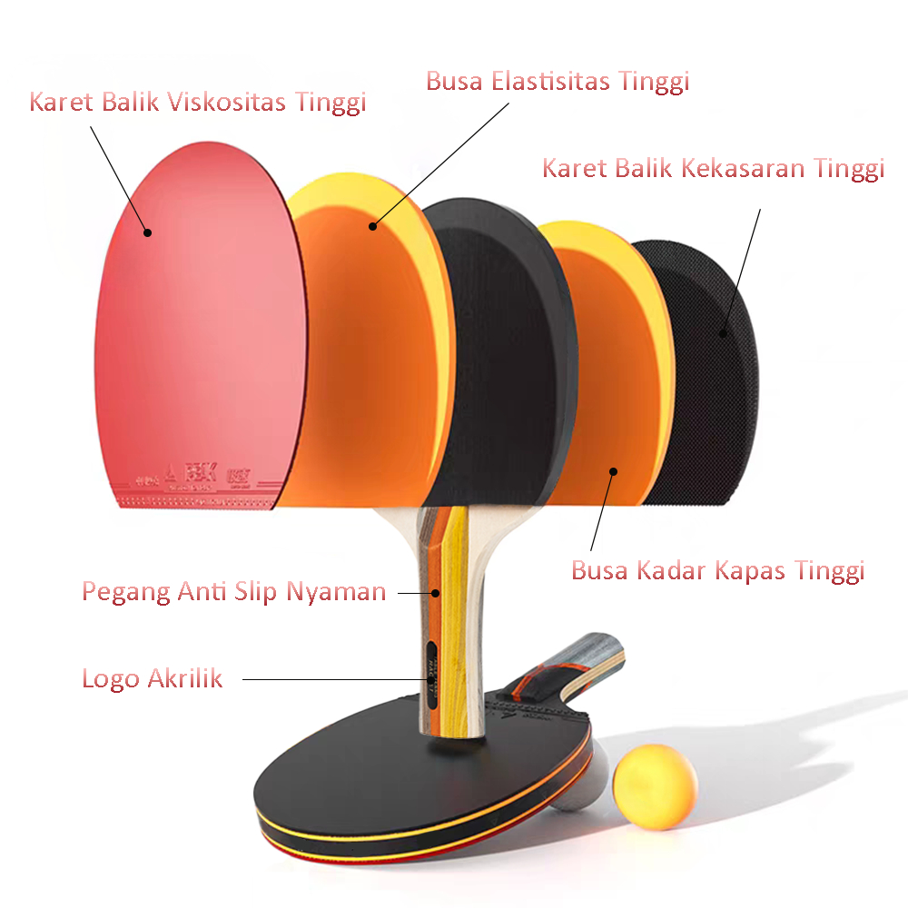 Set Lengkap Raket Pingpong 4 Bet + 8 Bola + Net Portabel + Tas Besar – Kayu 5 Lsan, Karet Premium, Cocok untuk Keluarga