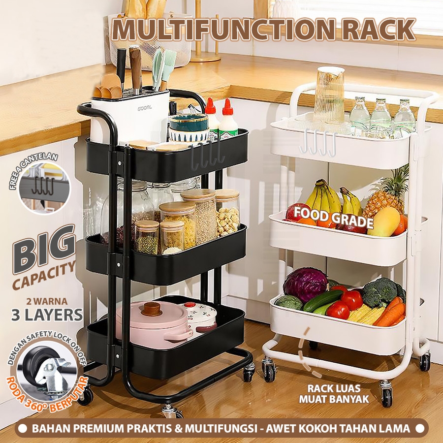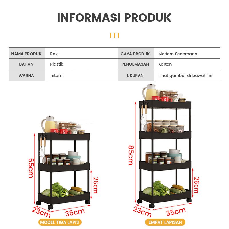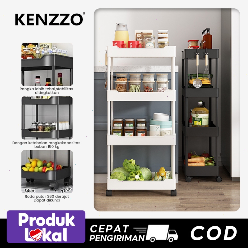 Kenzzo Square Rak Troli Rak Dapur Rak Serbaguna 4 Tingkat Dengan Roda