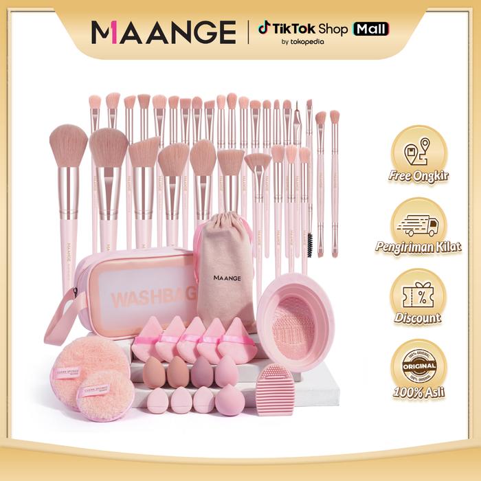 Maange Complete Professional Makeup Tools Set 30 Brush With Pouch + 5 Powder Puff + 5 Beauty Sponge+ 3 Detail Puff + 2 B