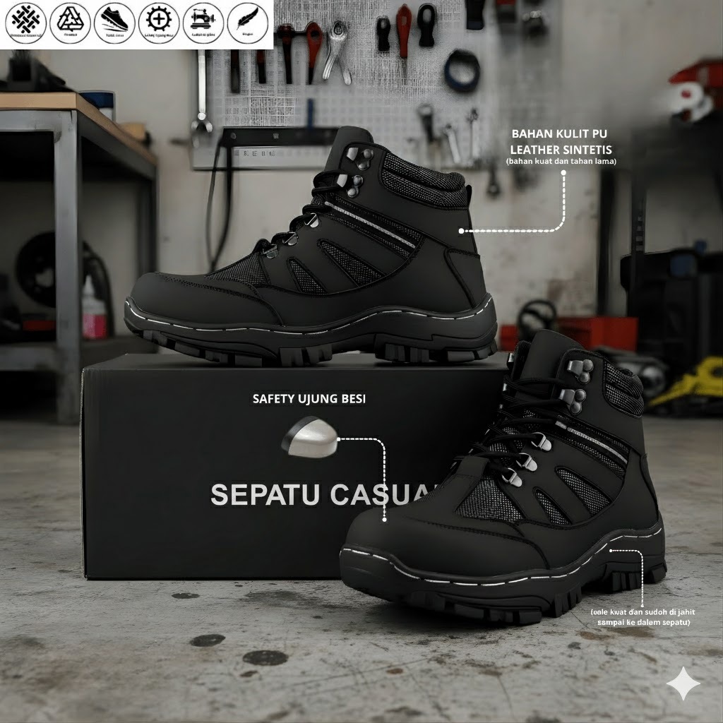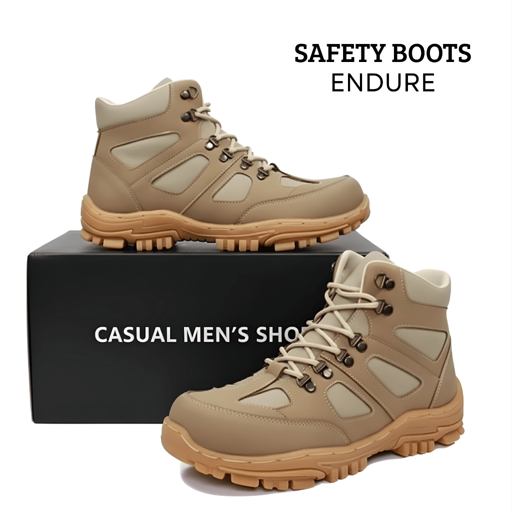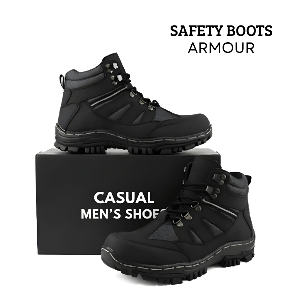 Bisa Sepatu Boots Safety Armor Pria Proyek Kerja Lapangan Ujung Besi Kulit Murah