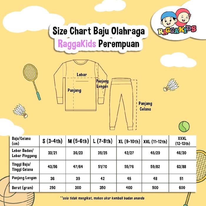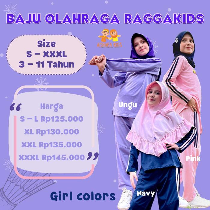 Setelan Baju Olahraga Anak Perempuan Usia 3 4 5 6 7 8 9 10 11 12 Tahun / Baju Olah Raga Raggakids Anak Cewek Bahan Kaos