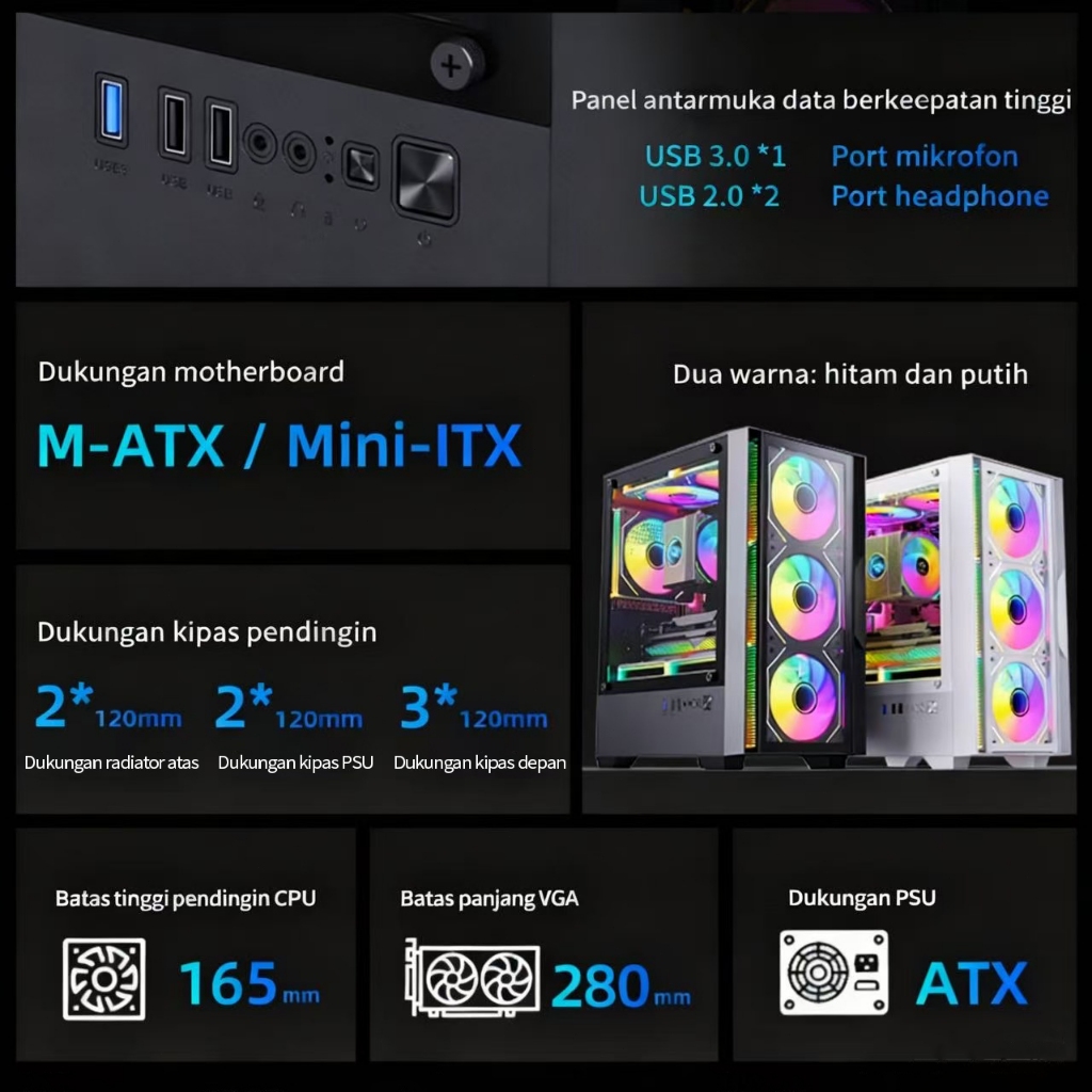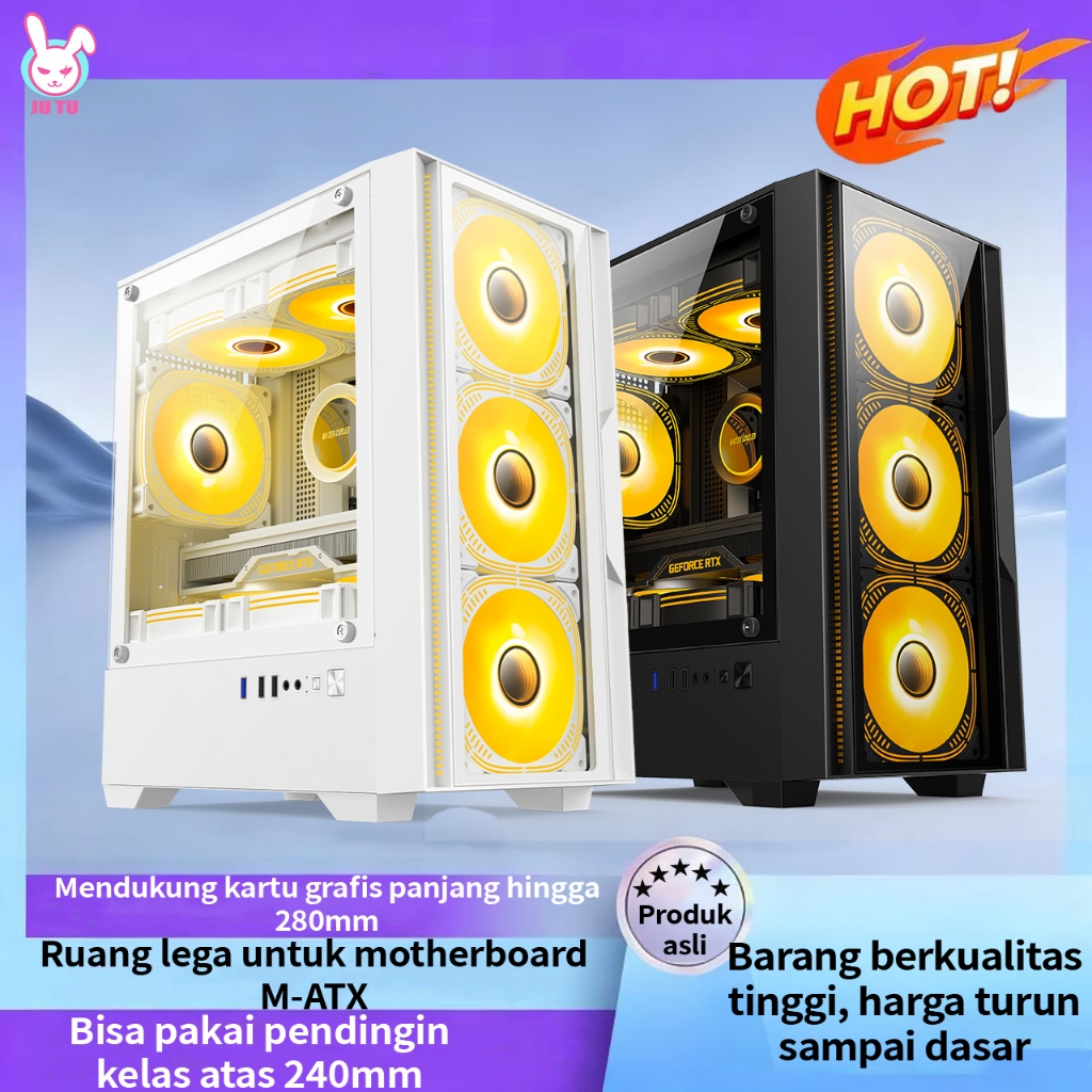JUTU Casing Komputer Desktop R Pemandangan Laut Casing Utama Transparan Sisi Kaca Permainan Komputer Desktop Tampak Tinggi Berwarna Hitam Putih 4080S/5090D