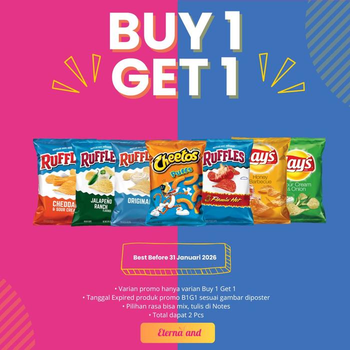 Promo Beli 1 Gratis 1 Cheetos, Chester, Funyun, Ruffles, Lays Impor Amerika - Lays Honey Bbq, Buy 1 Get 1 Free