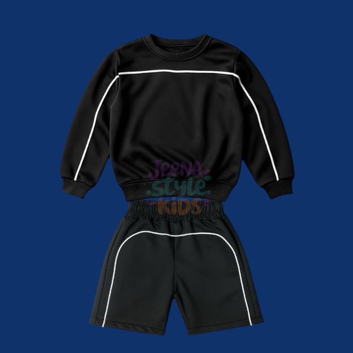 Setelan Anak Laki-Laki Dan Perempuan One Set Crewneck & Shortpants Reflective – Bahan Fleece Lembut Adem Nyaman Dipakai